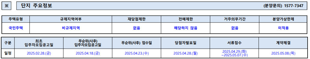 ※ 당첨자 선정 시 향후 5년간 투기과열지구 및 청약과열지역에서 공급하는