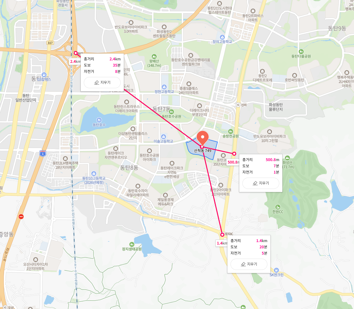 ※ GTX-A, SRT 동탄역 : 직선거리 4.3km