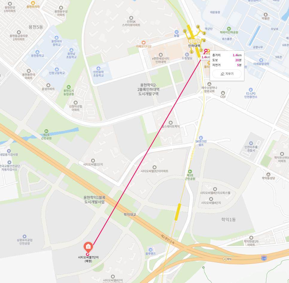인하대병원 : 직선거리 2.5km