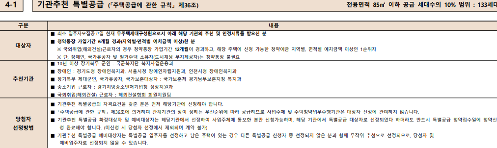 ※ 일반(기관추천) 특별공급대상자는 해당기관에서 선정하여 사업주체에
