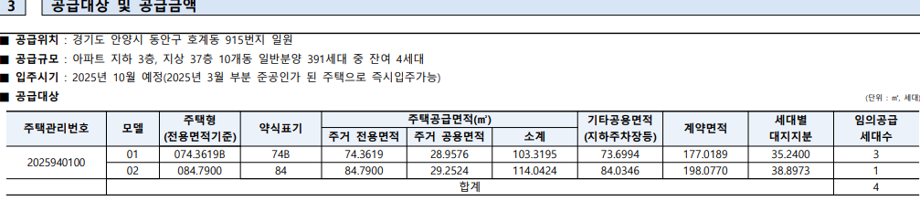 공급규모 : 아파트 지하 3층, 지상 37층 10개동 아파트 총 391세대 중 잔여물량 4세대