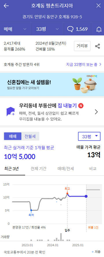 33평형 최근 실거래 기준 1개월 평균 : 10.50억