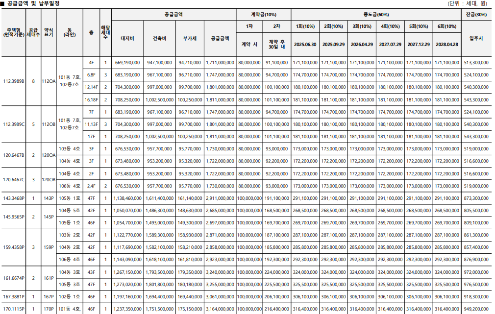[공급 금액 : 계약금 10%, 중도금 60%, 잔금 30% 비율]