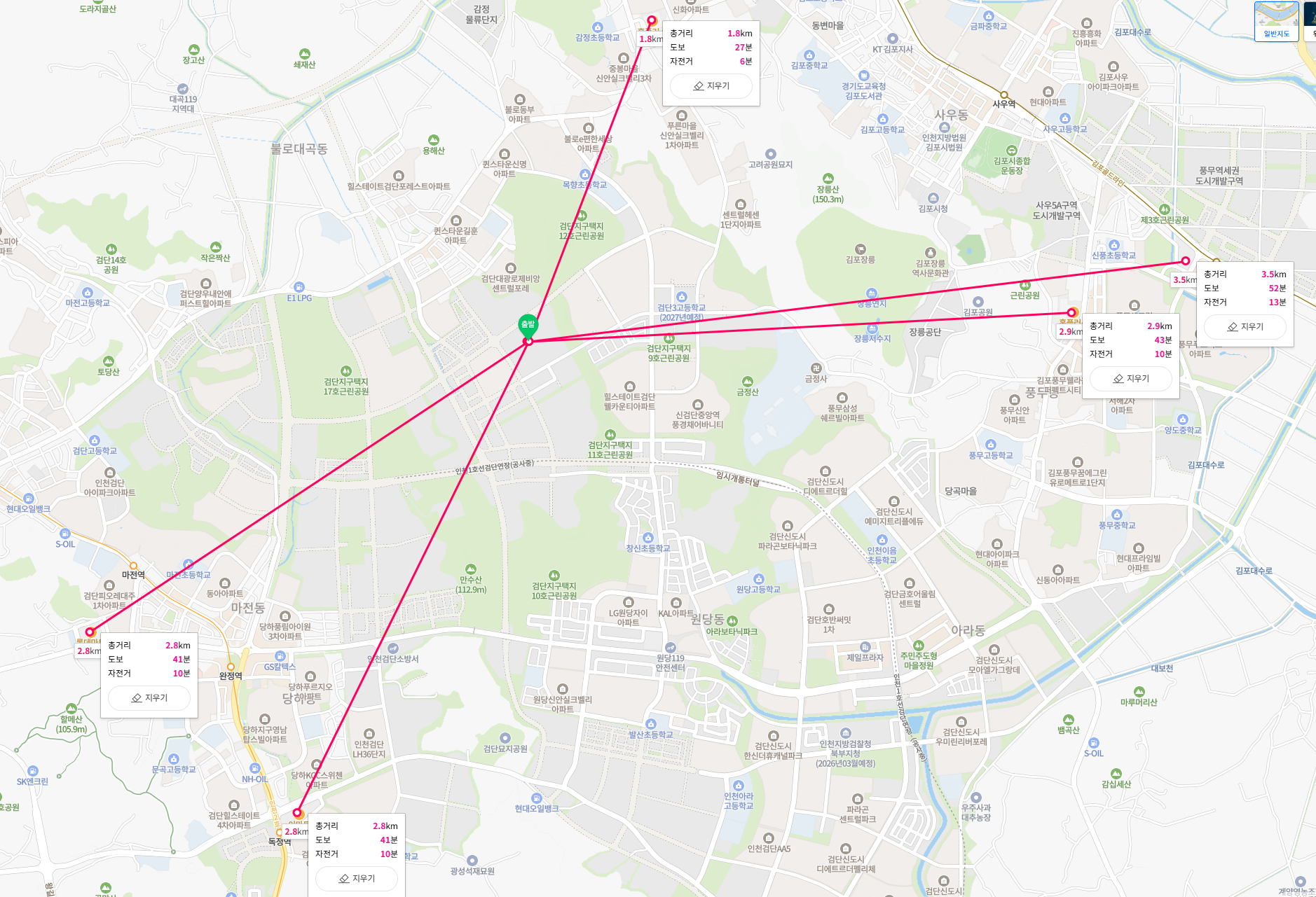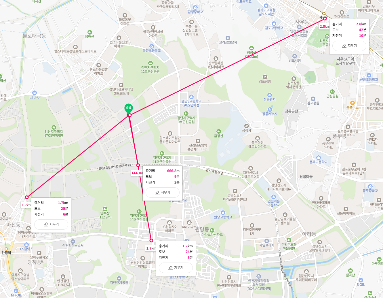 검단지구택지 14, 15호 근린공원 : 직선거리 996m